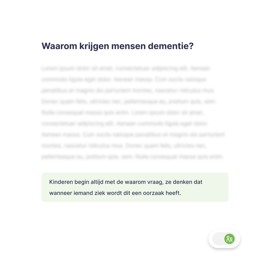 Het doel van het webproject is om een veilige en ondersteunende omgeving te bieden voor kinderen van ouders met dementie. Dementie kan voor kinderen verwarrend en angstaanjagend zijn, maar via deze digitale plek kunnen ze begrip krijgen en leren omgaan met de ziekte van hun vader of moeder op een toegankelijke manier.
